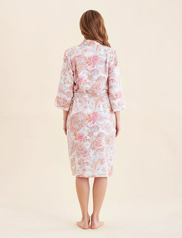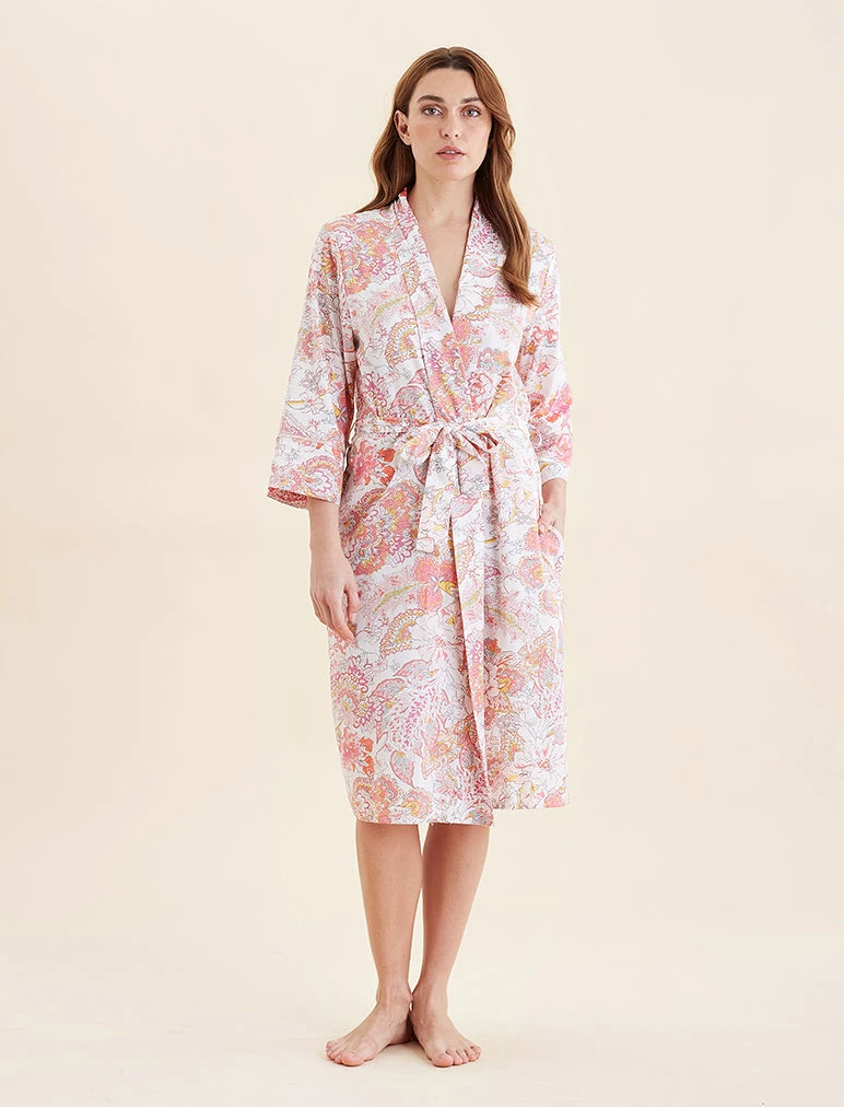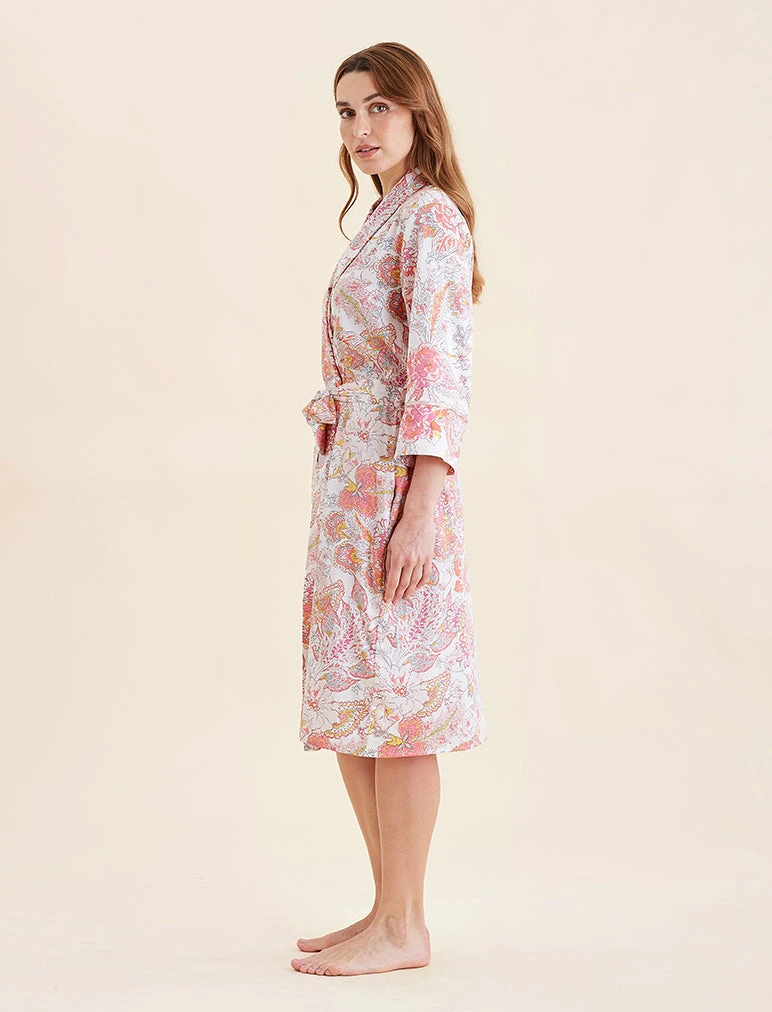 A summer strawberry hue, all over floral in our silky soft pure cotton. Wrap yourself in softness this summer.