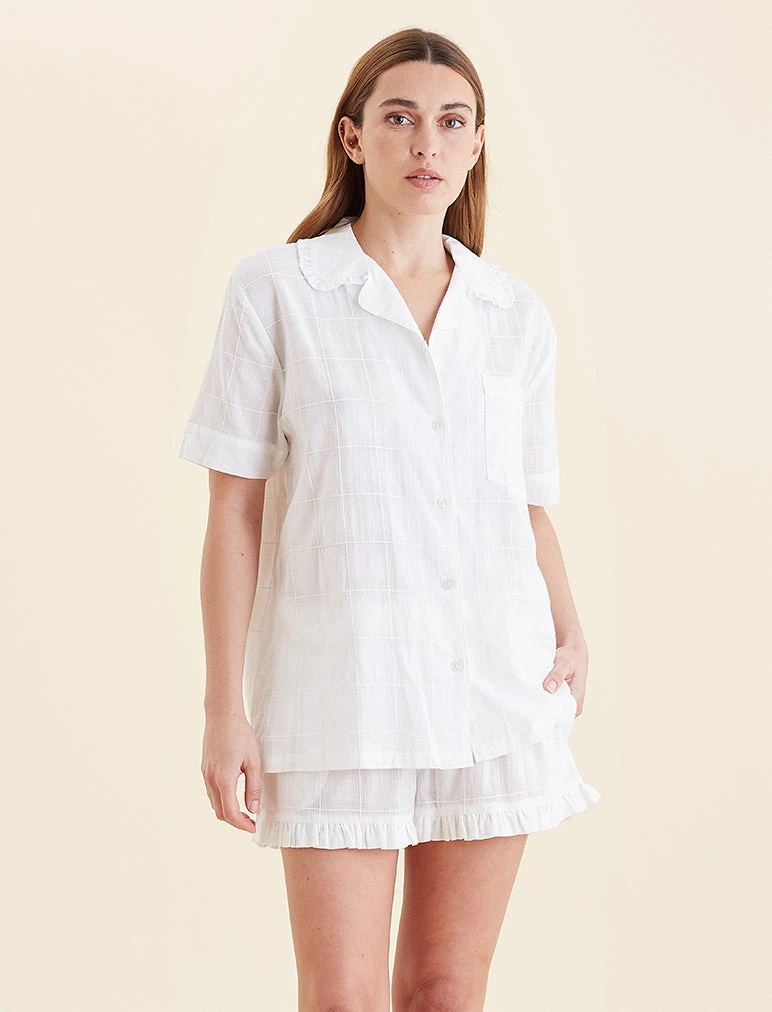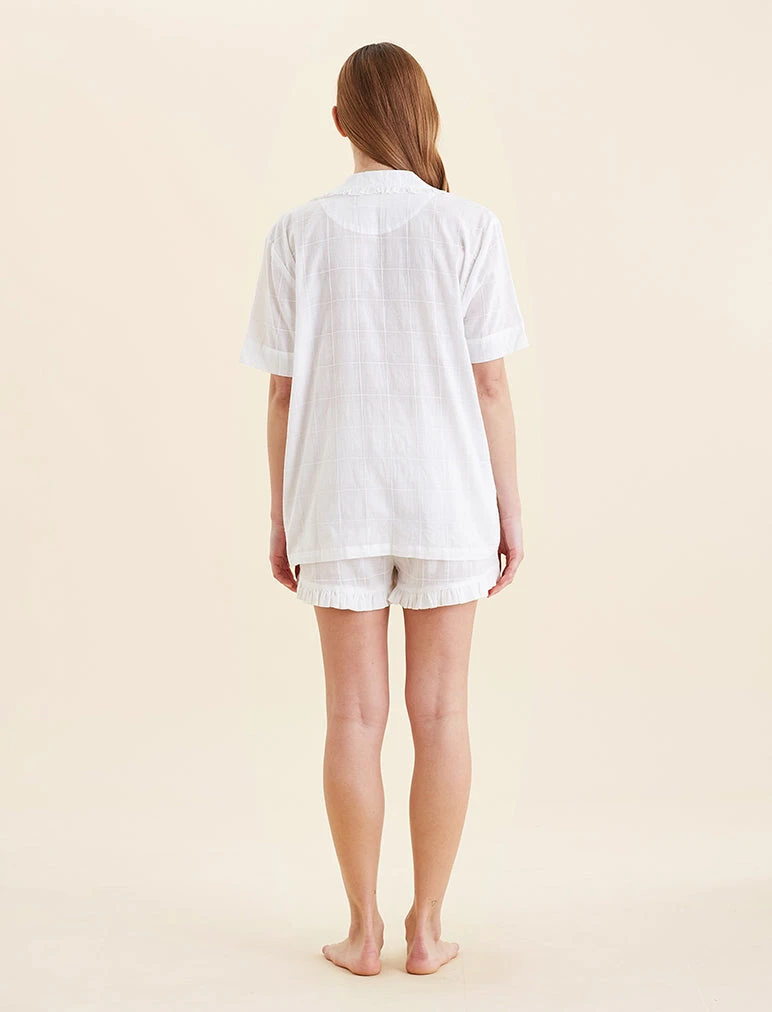 Slip into effortless charm with the Ivy Organic Cotton Frill Short Sleeve Boxer PJ. Made from 100% Organic Cotton, this set offers a soft, breathable feel that’s perfect for keeping you cool and comfortable all night. The short-sleeved top with delicate frill detailing adds a feminine touch, while the relaxed boxer-style shorts provide the ultimate ease and comfort.