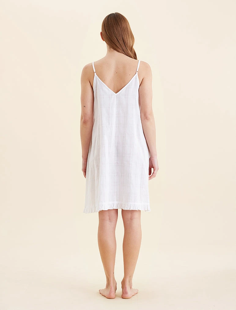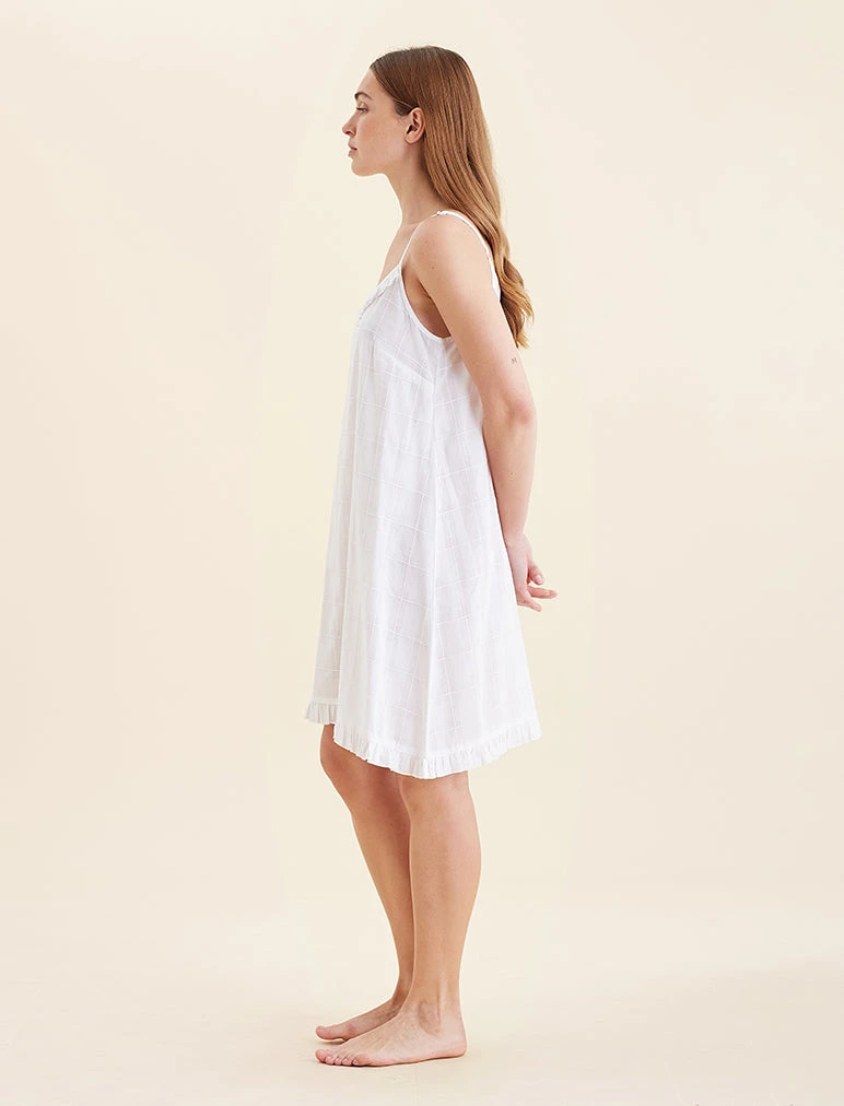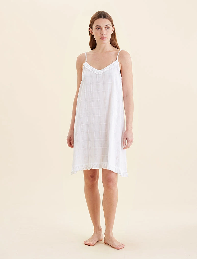 Embrace effortless charm and comfort with the Ivy Organic Cotton Frill Strappy Nightie. Made from 100% Organic Cotton, this nightgown offers the perfect blend of softness and breathability, making it ideal for warm nights or peaceful lounging. Lightweight and airy, this nightgown drapes beautifully, allowing you to move freely while adding a sweet, sophisticated touch to your evenings.
