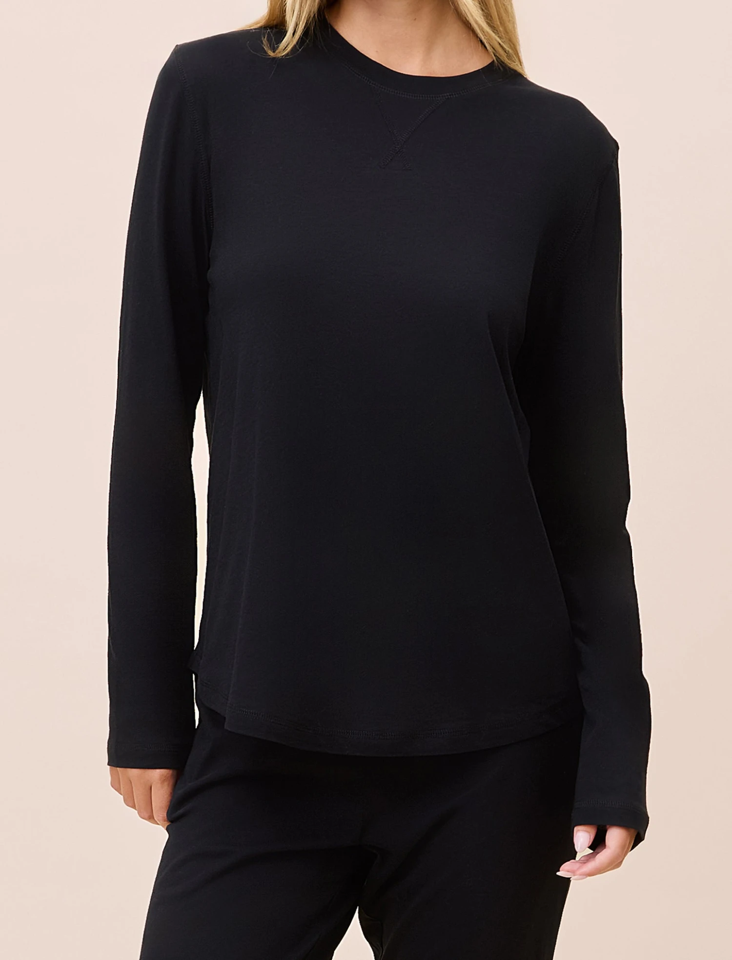 • Long-sleeve tee with scoop neckline and gentle scoop hemline