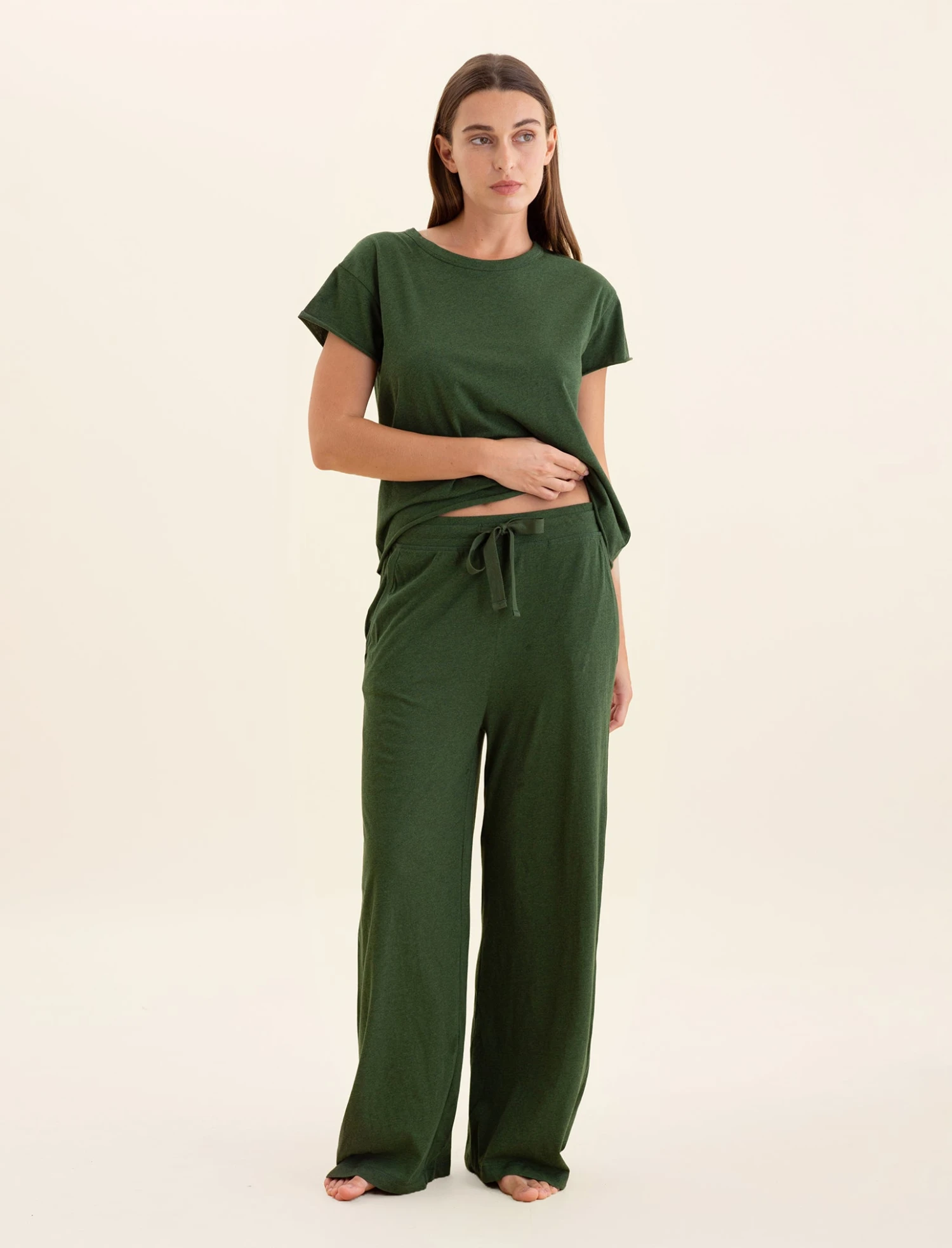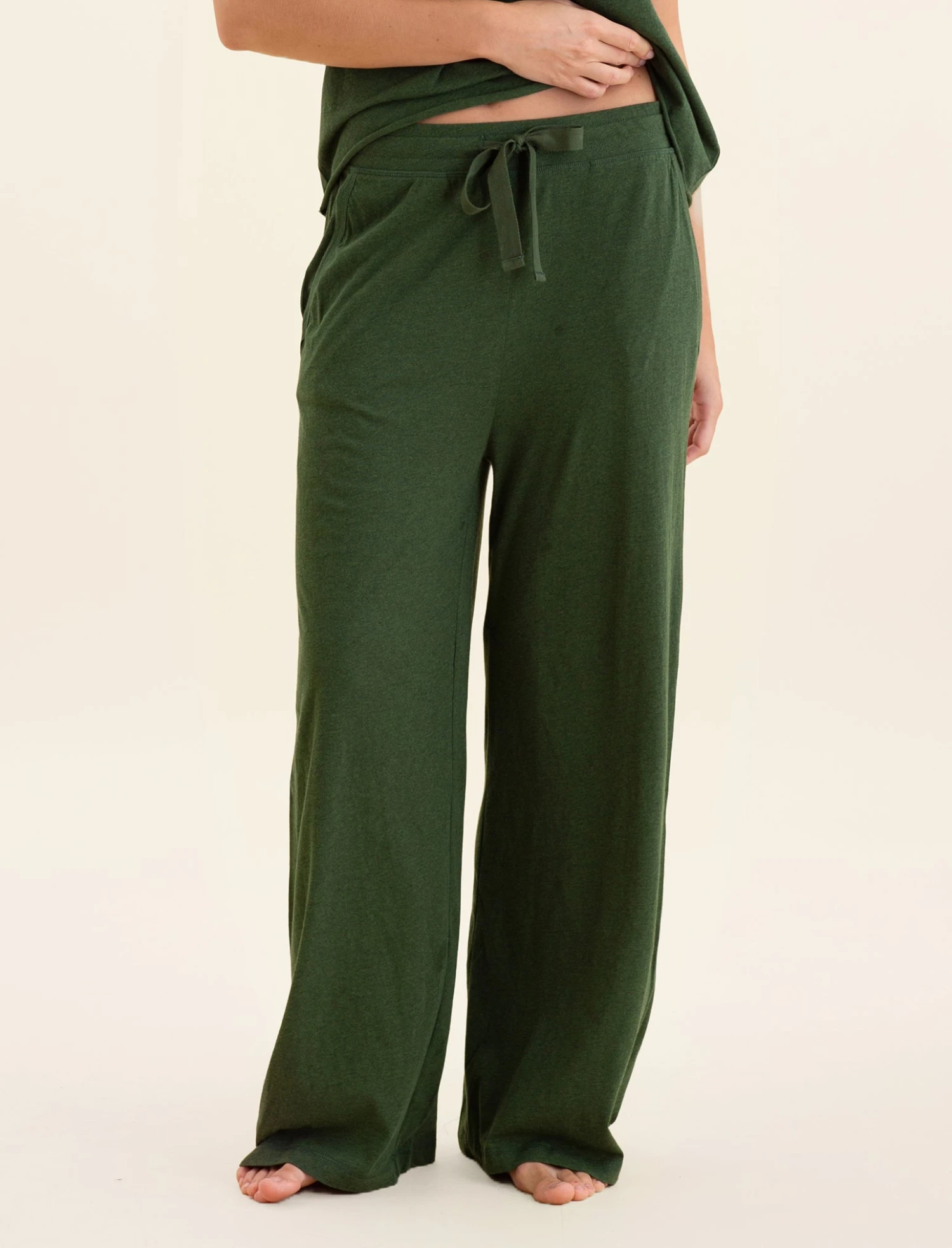Our amazingly soft and stretchy 100% organic cotton is all you will ever need. Perfect for lounging around and jumping into bed, every day. These soft, wide leg pants are ideal for a day of relaxing.Â