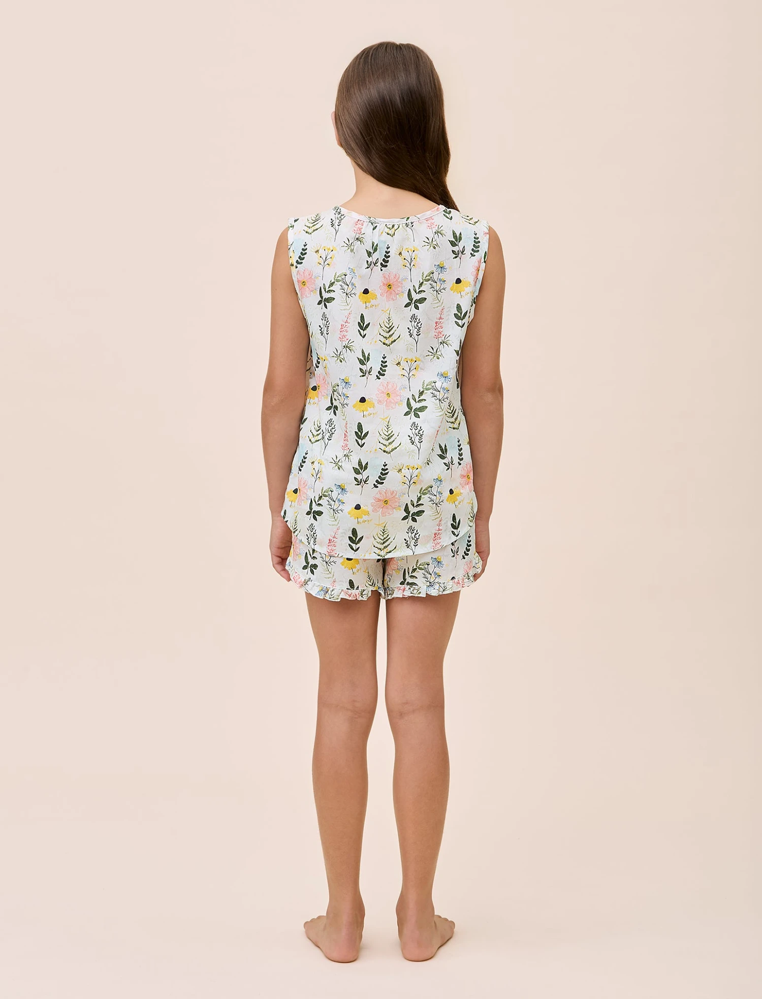 The cutest matching mini set! Made from the softest cotton sateen our Delphine Frill Cami & Boxer Short set is the perfect addition to your little one’s spring sleepwear wardrobe.Â