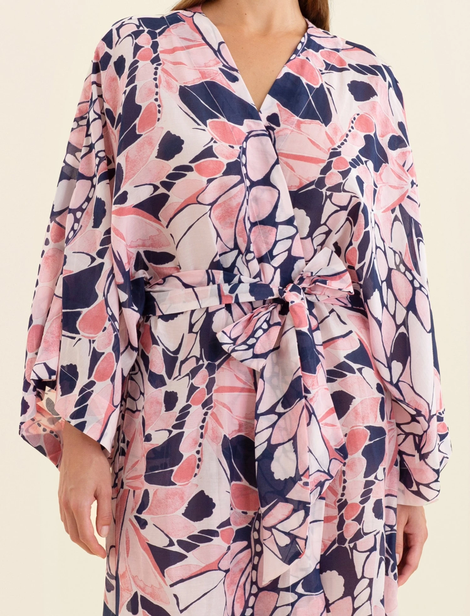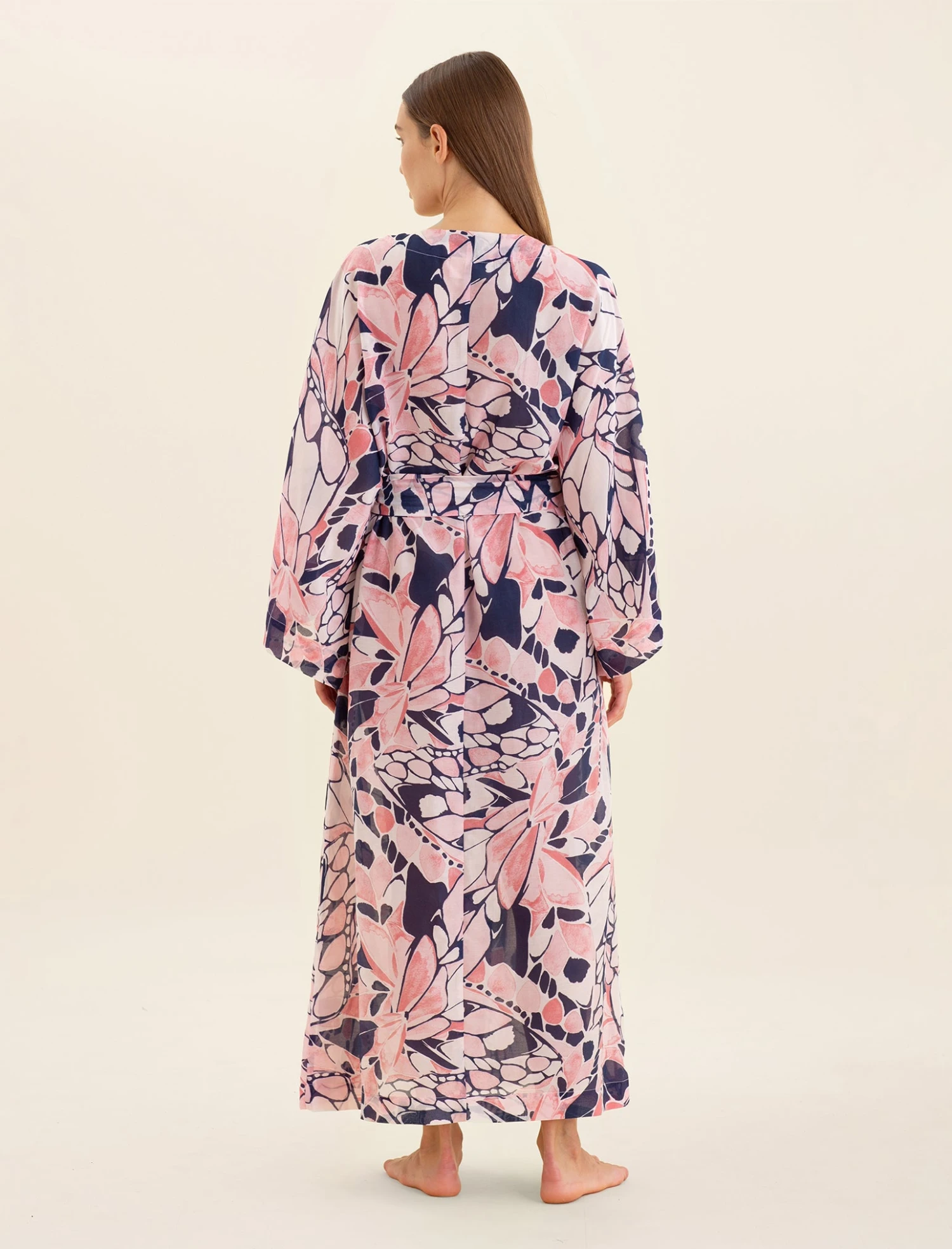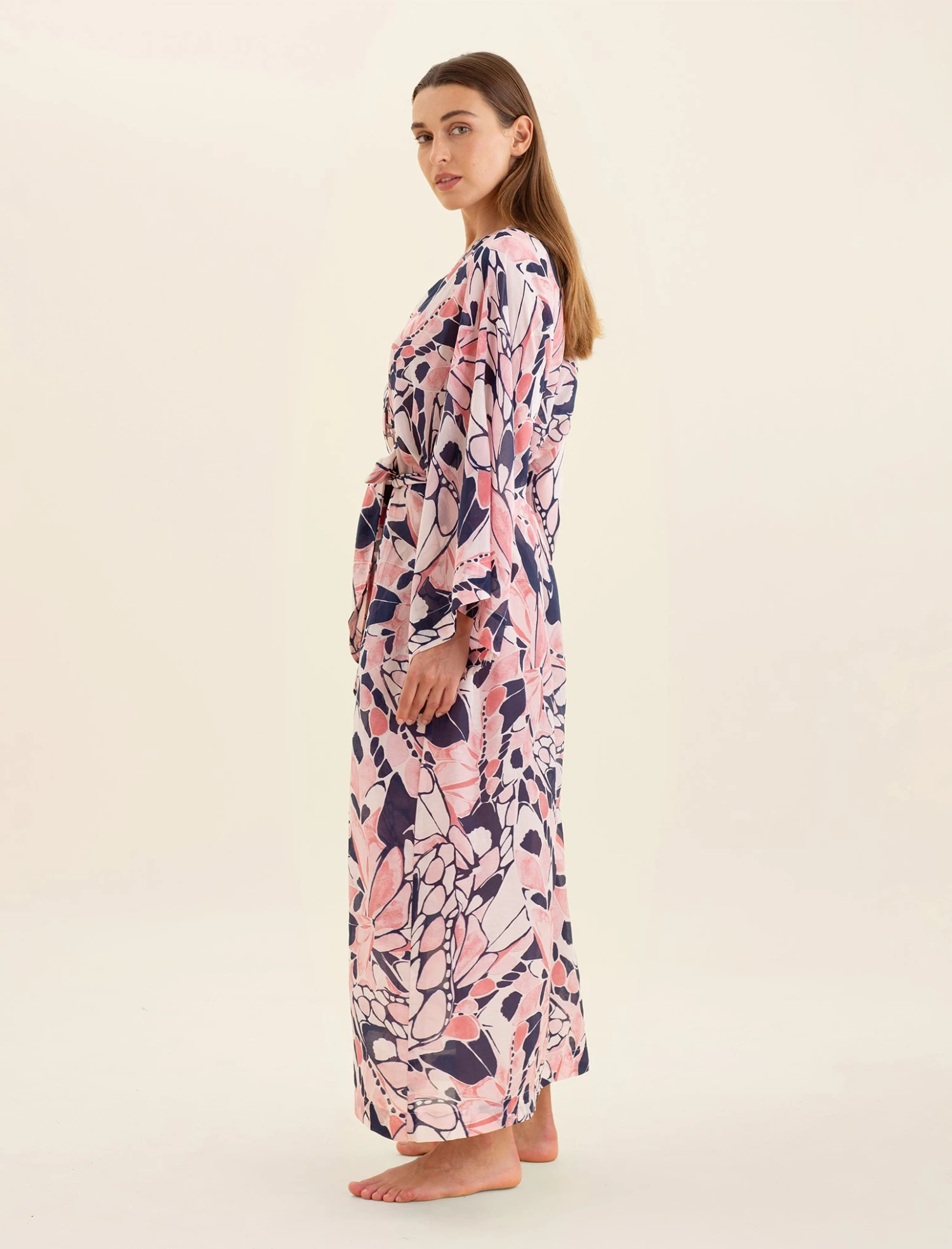 Dance in your dreams with fabric that mirrors your every move. Our lightest pure cotton fabrication breathes and moves with you. This dreamy floral kimono-style maxi robe is perfect all year long!