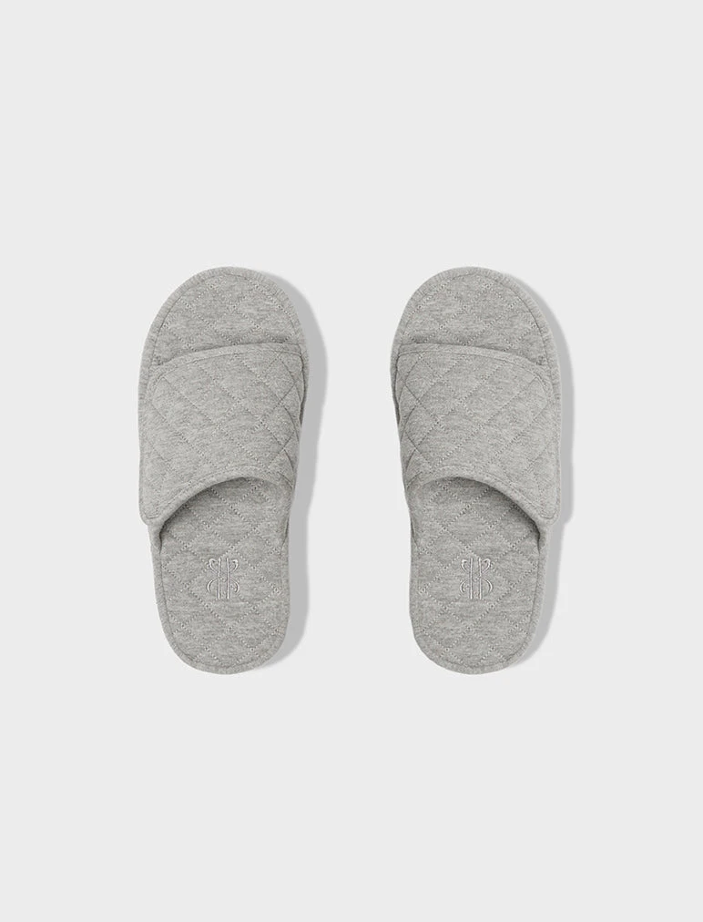Breathable and cozy cotton slippers with a quilted crossover strap.Â