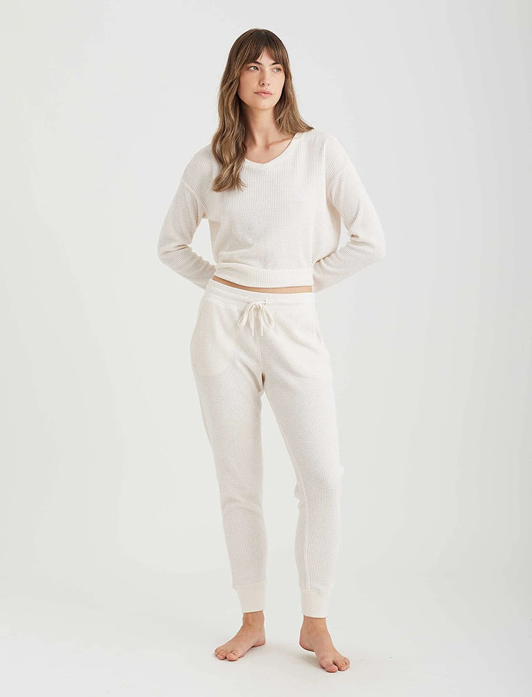 Our best-selling waffle jogger pants are back in stock! Perfect for bed or to lounge around the house in.