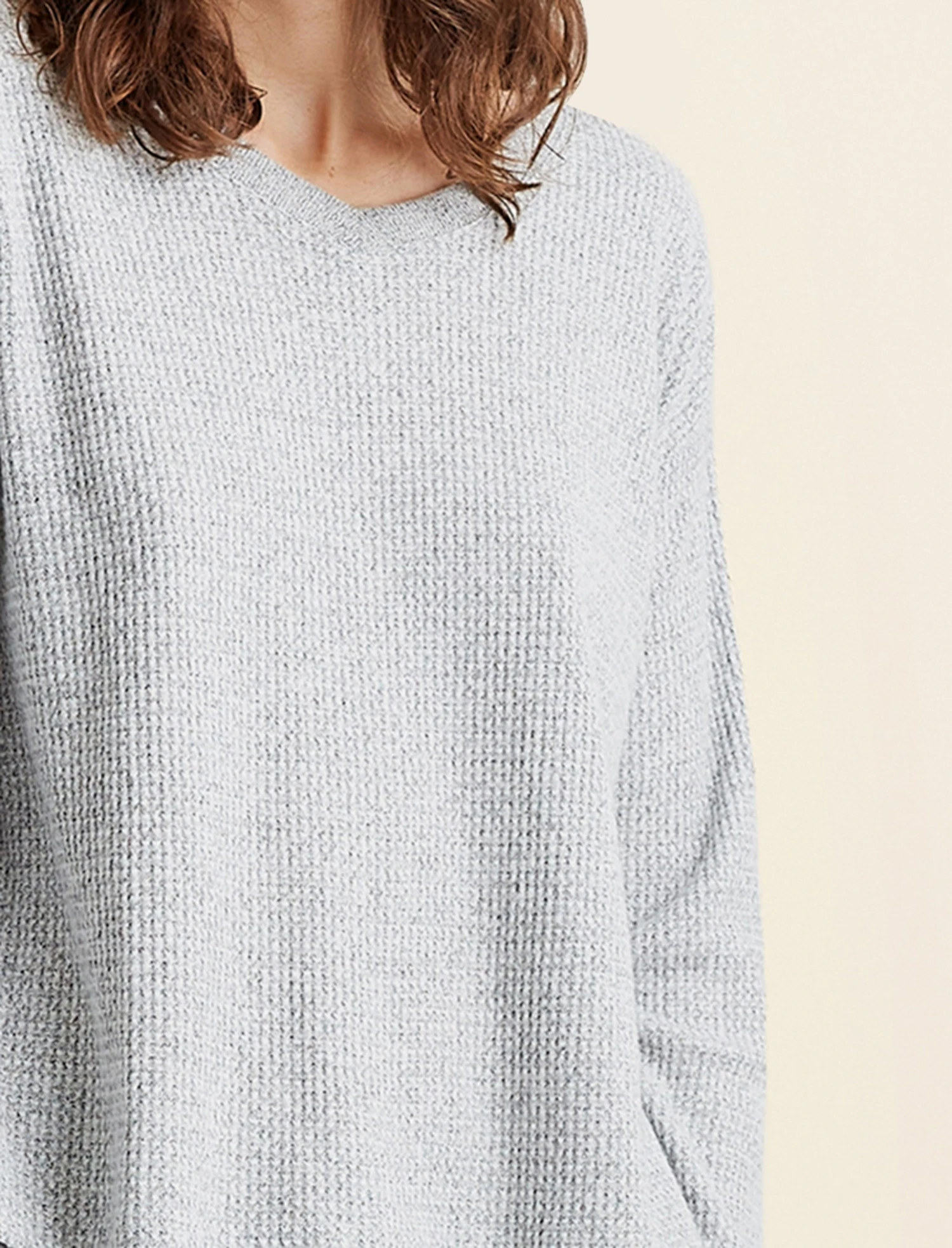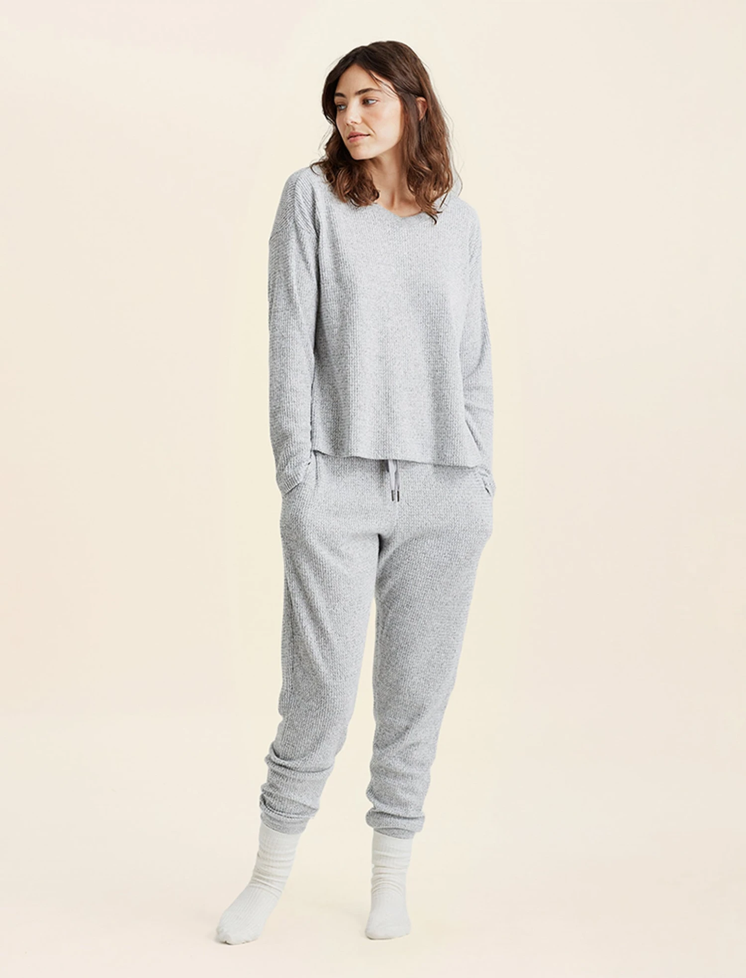 One of our most popular Winter fabrics due to the unexpectedly soft and warm hand feel. This lightly brushed, knit waffle fabric PJ has a warm hand feel and a light but cozy weight.